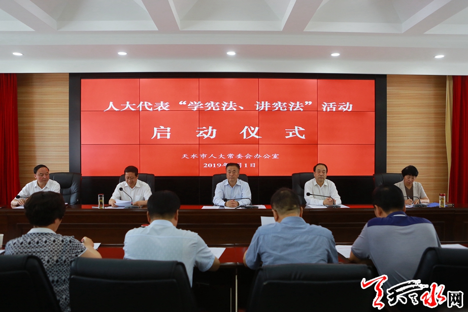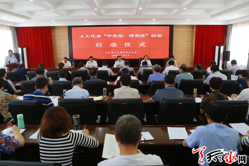 天天天水网讯【全媒体记者马放】7月1日,市人大常委会举行人大代表“学宪法、讲宪法”活动启动仪式。市人大常委会党组书记、主任蒋晓强出席会议并讲话,副主任安志宏、蒲朝晖、王晓琴,秘书长杨坤参加启动仪式。