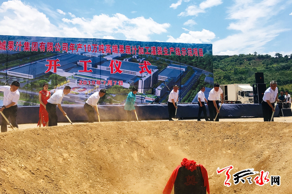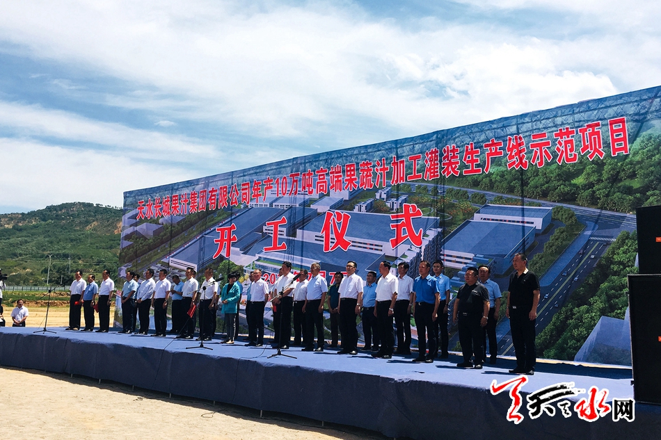 天天天水网讯【全媒体记者 童强】7月7日,天水长城果汁集团公司10万吨高端果蔬汁加工灌装生产线建设示范基地项目在麦积区东柯河工业园区开工奠基。