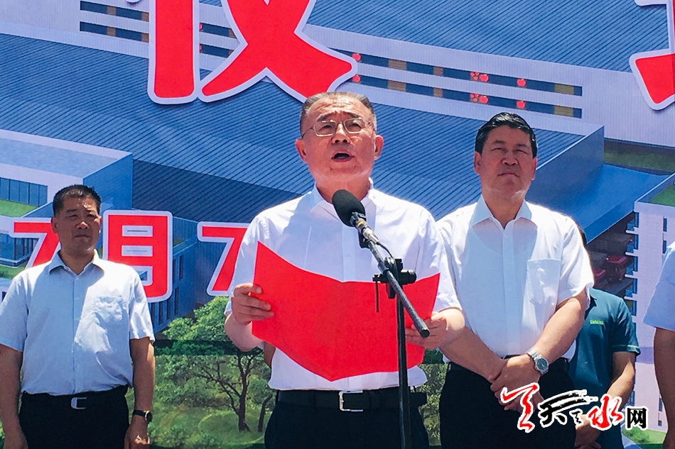 市委副书记、市长王军在致辞中说,天水长城果汁集团公司年产10万吨高端果蔬汁加工灌装生产线示范项目,既是我市加强工业项目建设、推动工业经济高质量发展的重要成果,也标志着天水长城果汁集团公司步入了一个全新的发展时期,对于促进天水长城果汁集团公司扩大产能和技术升级,进一步延长我市果品产业链条、增加果品产业的附加值,推动果农增收致富和企业做大做强,必将起到积极的促进作用。希望天水长城果汁集团公司以项目开工为新的起点,坚持以新发展理念为引领,以信息化、智能化、绿色化改造为方向,进一步创新发展理念,加快发展步伐,增强企业综合实力,为我市工业经济发展做出新的更大贡献。麦积区和市直相关部门要牢固树立服务意识,进一步简化办事程序,提高办事效率,提升服务质量,及时协调解决项目建设中遇到的困难和问题,确保项目按期建成使用,早日发挥效益。项目管理单位、施工单位、监理单位要坚持高标准严要求,科学施工,从严监管,保证质量,加快进度,努力打造优质、安全、精品工程。市委、市政府将一如既往地关心支持天水长城果汁集团公司和东柯河工业园建设发展,持续加大服务保障力度,积极为企业发展创造良好环境,全力推动天水工业经济持续健康高质量发展。