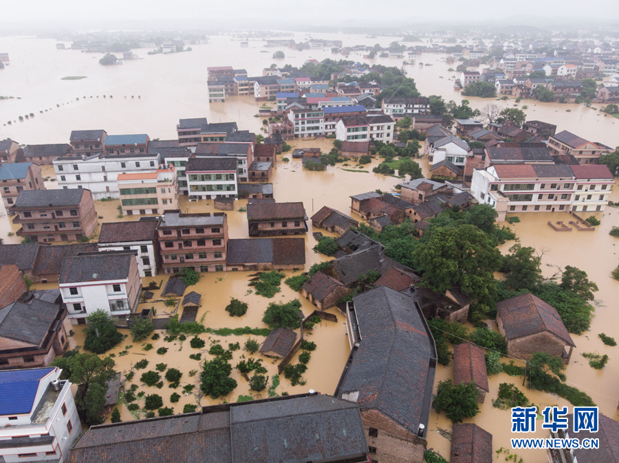 7月9日,湖南省衡阳市衡东县受灾严重(无人机拍摄)。 新华社发(陈思汗 摄)