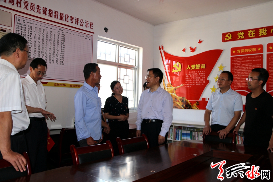 两日来,李元平一行先后深入到甘谷县大像山镇马务沟村、磐安镇汪家村,武山县洛门镇郭台村、蓼阳村,张家川县胡川镇仓下村、刘堡镇丰银村,秦安县刘坪镇何湾村、兴国镇何川社区,通过听取汇报、实地察看、座谈交流等方式,详细了解基层党组织贯彻落实中央和省委部署要求,基层党组织作用发挥、党建引领产业发展等方面的情况。