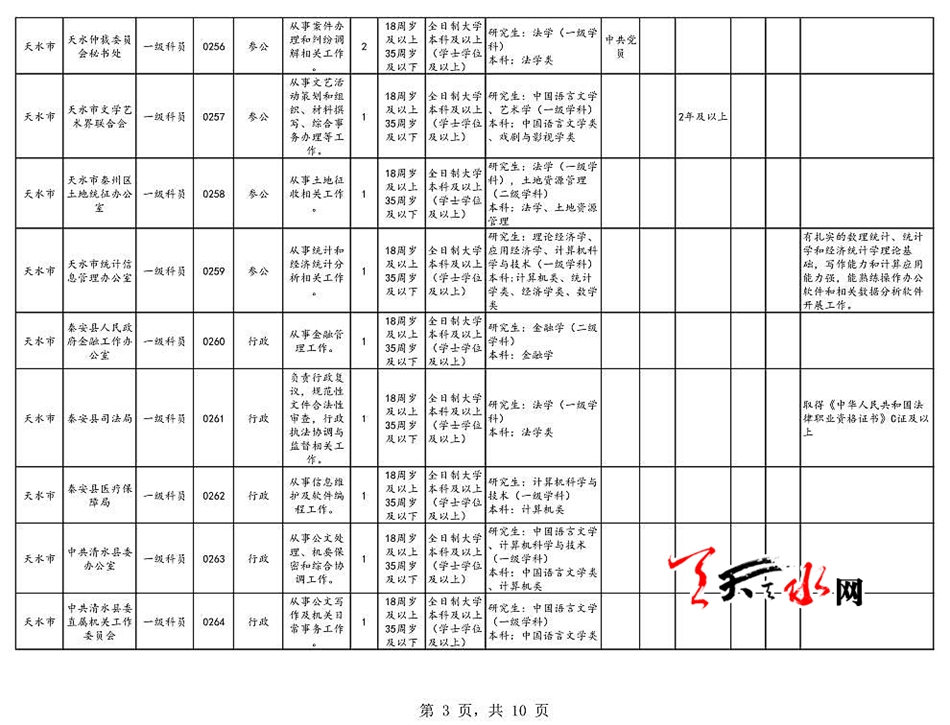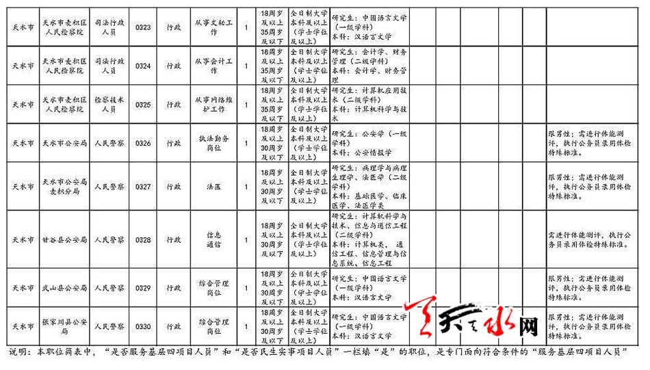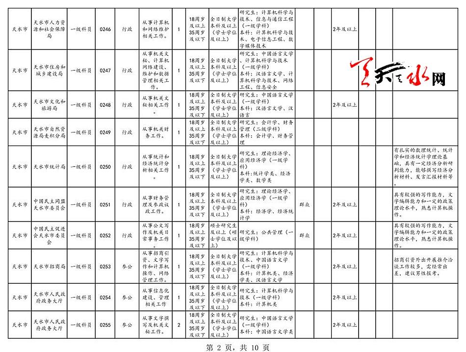 附件: 甘肃省2019年度考试录用机关公务员和参照公务员法管理单位工作人员职位计划简表(天水市)