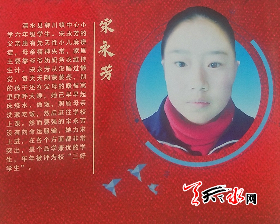 记者从天水市文明办获悉,2019年度第一期“新时代甘肃好少年”先进事迹发布会,于7月17日下午三点在甘肃省广播电视总台1000平米演播室举行,我市秦州区城南小学石笑玮、清水县郭川小学宋永芳、张家川县龙口小学李军三名好少年入选!