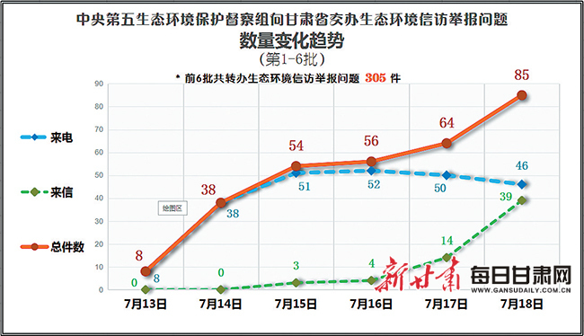每日甘肃网兰州讯(新甘肃·甘肃日报记者 文洁)7月18日,中央第五生态环境保护督察组向甘肃省移交了第六批生态环境信访举报问题共85件,其中来电46件,来信39件,涉及我省14个市(州)。
