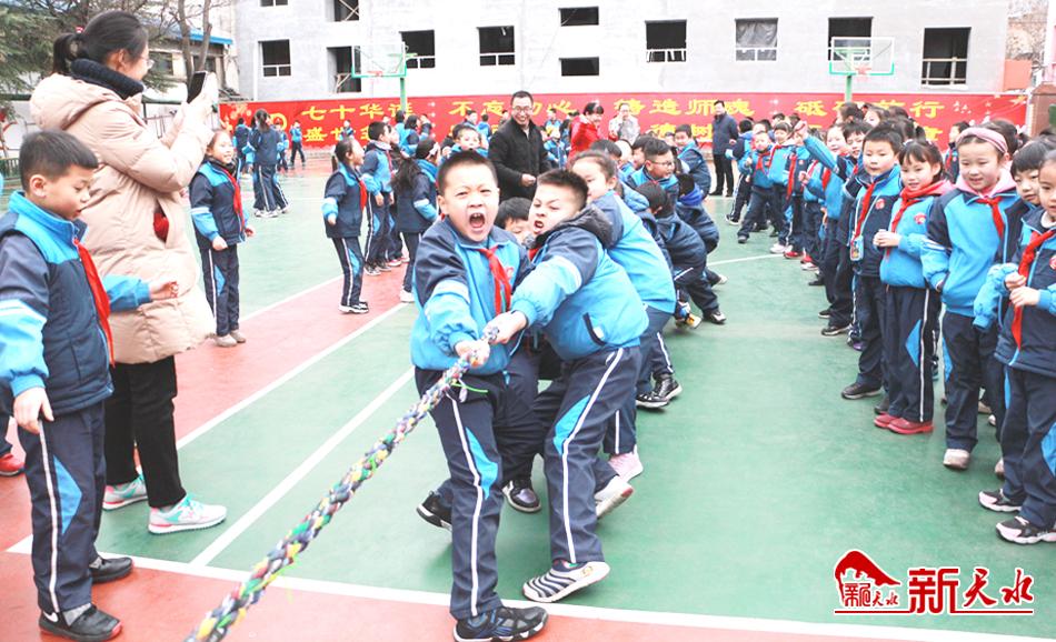 为丰富师生的文体生活,喜迎新年。12月26日和27日天水市实验小学举行“迎新年·庆元旦”师生阳光体育运动比赛。学生以年级组为单位开展了拔河比赛,教师以年级组为单位进行了跳绳比赛。加油声、欢笑声响彻校园,展现了天水市实验小学师生朝气蓬勃的精神风貌。