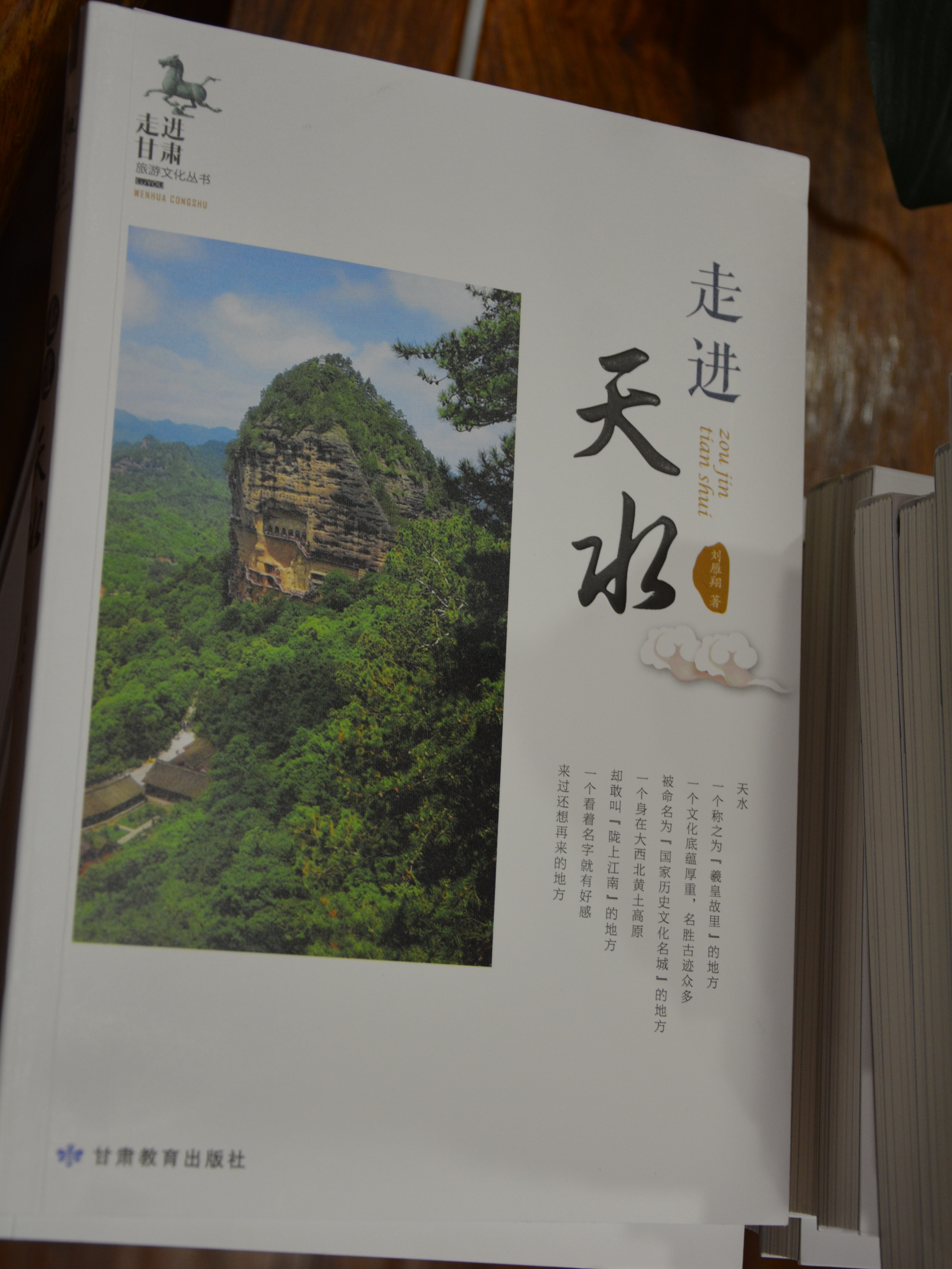 “天水是一座小城,小得单纯,老城里面没有一家叫工厂的那样的企业。小得精巧,一个上午或一个下午你可以徒步走遍全城,花十元人民币坐出租车,你可以从城市的这头跑到城市的那头……”翻开这本《走进天水》,序言中的文字便映入眼帘,书中将天水的景点、风土人情、美食特产、出行策略以及行车票价都囊括其中,让我们对于家乡天水有了更深的理解。 刘雁翔直言,创作这本书的初衷是圆了他一个“文学梦”,鉴于对于地方史的研究,他认为,对现实有用的历史是最好的历史,应该将正确的、准确的历史文化知识写出来,分享给大家,于是才有了这本书的构思。但创作之路却是困难重重,从构思到落实,每一个电话号码、每一条旅游路线,每一个数据,都要确保准确无误,甚至比研究历史还要“麻烦”。经过一年的走走停停,2019年5月,《走进天水》由甘肃教育出版社出版发行,收获了广泛的好评。循着序言的文字,我们对这本书产生了极大的好奇,细细地翻阅,书中的文字配以插图,让一处处古迹、美食,就这样闯进了我们的视线,书中的天水,古柏苍劲,古城肃穆,猪油盒子、油饼、馓子金黄酥脆,樱桃红艳、蜜桃飘香……这是一本能听、能看,甚至能嗅到美食味道的书,令人爱不释手、品之不厌。