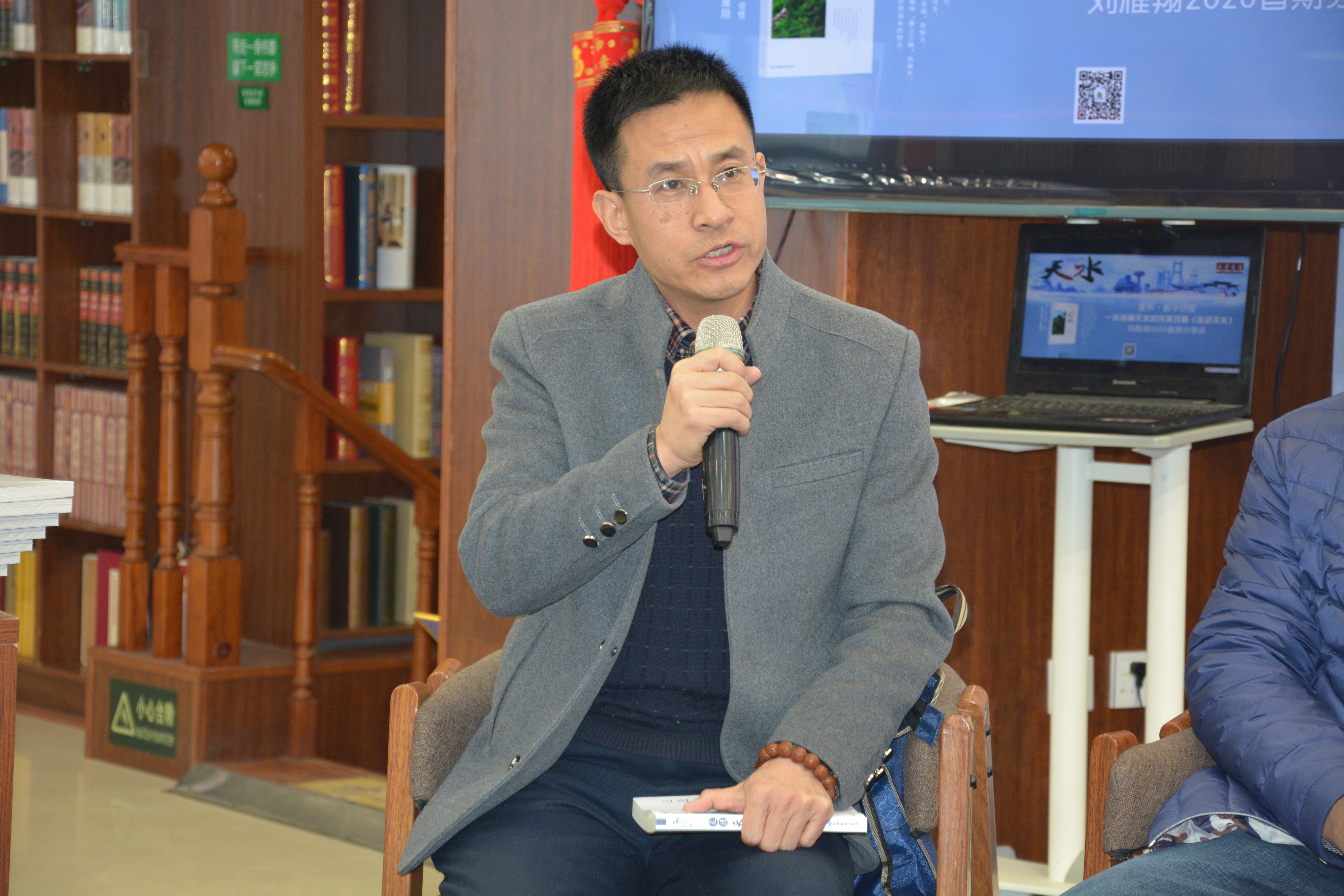 即将迈进新春的古城天水,处处弥漫着浓浓的欢喜,值得庆幸的是,今年的寒冬并不刺骨,反而笼罩在一片暖阳之下,让我们满怀期待与憧憬。1月5日,天水市麦积区新华书店书香弥漫,天水师范学院教授刘雁翔的新书《走进天水》分享交流会在这里举行,为新年伊始的古城天水带来了一阵清新的风,本地文学爱好者30余人参加了交流会。作为研究天水历史与伏羲文化的专家,刘雁翔著有《伏羲庙志》《大哉羲皇》《秦州文史研究》等著作,在我们的印象中,这样的一位学者一定是严谨且略带刻板,又显严肃的,可翻开刘雁翔的新书《走进天水》,却带我们走入了一个完全不一样的世界,轻松愉悦的语言,却不失文学的优美,细致而全面的描写,让我们认识了一个不一样的天水:一座“精巧而瓷实”的小城。我们也通过这本书,看到了一个不一样的刘雁翔,一个可爱而又鲜活的作家。