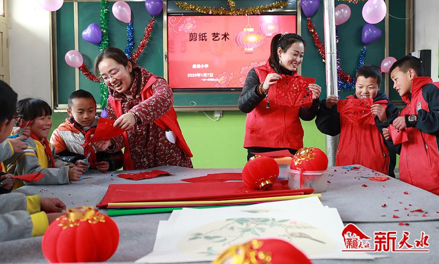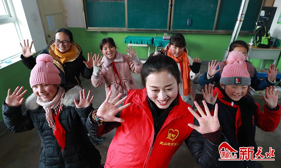 “送教团”老师与孩子们一起热舞。近日,由甘肃省天水市武山县武山一中、东顺初级中学、渭北初级中学的5名城区教师组成的“送教团”来到位于地处该县深山区的温泉乡盘坡小学,开展送教帮扶活动,为山区孩子送来了一份特殊的新春贺礼。近年来,武山县针对山区学校音体美教师结构性短缺、艺术类课程质量不高等实际情况,发起成立了“璞玉留芳”武山教师志愿者艺术团,通过开展支教帮扶活动,让山区孩子享受到了优质教育资源,促进了全县教育优质均衡发展。