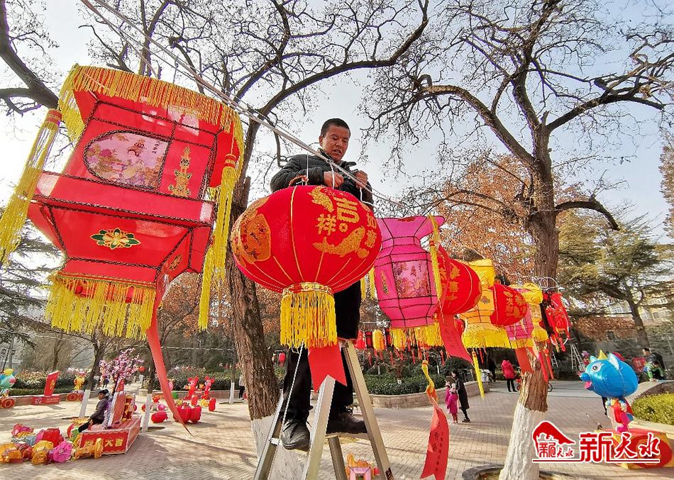 1月21日,工作人员在秦州区人民公园悬挂。春节临近,人民公园的数千盏彩灯点亮,营造喜庆祥和的节日氛围。新天水·天水日报记者 孙镇 摄