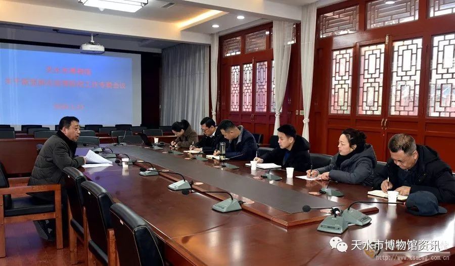 1月26日,天水市博物馆第二次召开新型冠状病毒感染的肺炎疫情防控会议,传达贯彻中央、省、市疫情防控会议精神,安排部署下一阶段疫情防控任务。会议学习了《天水市新型冠状病毒感染的肺炎疫情联防联控工作领导小组关于暂停举办大型公众聚集性活动的通告》等文件。并决定,暂停对外开放天水市博物馆、伏羲庙景区、天水民俗博物馆。按照甘肃省启动重大突发公共卫生事件一级响应和天水市同步启动相应级别的突发公共卫生事件应急预案,部署了春节期间的防控工作。