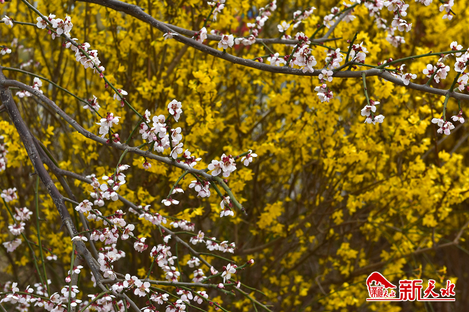 新天水讯【天水日报记者周文涛】3月12日,麦积区马跑泉公园春意正浓。园内翠柳依依,清波荡漾,雪白的樱花、粉红的桃花、金黄的连翘花竞相怒放,惹来游人陶醉其中,留恋忘返。