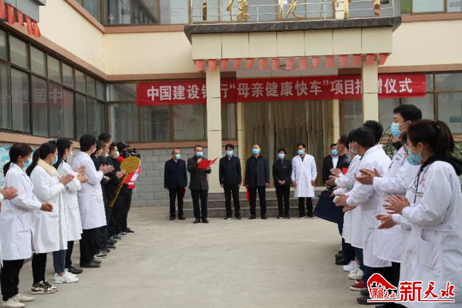 新天水讯 新时代催人奋进,新征程无限美好。2020年4月10日上午,建行天水分行“母亲健康快车”捐赠仪式在天水市麦积区新阳镇中心卫生院隆重举行。麦积区委副书记朱刚、区委常委、副区长周岳红,建行天水分行副行长王有志、合规官周海英、高级经理王峰栢及麦积区金融办、扶贫办、妇联、卫健委、新阳镇、天水日报社、麦积区电视台等单位负责人共同见证了捐赠仪式。麦积区委副书记朱刚讲话,建行天水分行副行长王有志介绍“母亲健康快车”捐赠相关情况,区委常委、副区长周岳红主持捐赠仪式。周海英合规官代表建行天水分行将“母亲健康快车”的金钥匙递交给了新阳镇中心卫生院负责人。