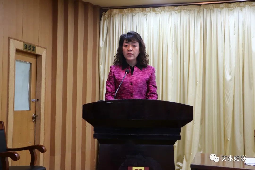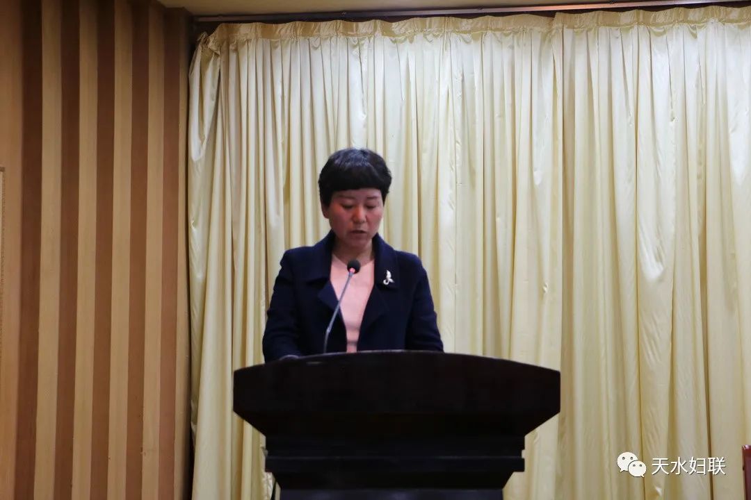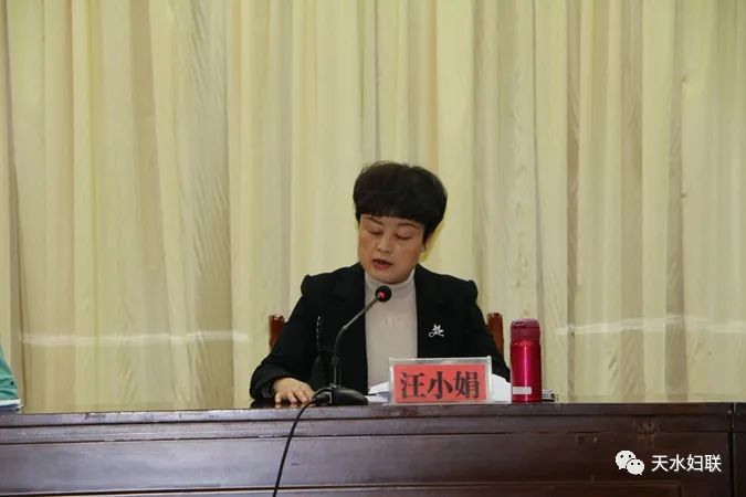 副市长汪小娟作了讲话,她指出,过去的一年,全市各级妇联组织坚持以习近平新时代中国特色社会主义思想为指导,全面落实全国全省妇联工作会议精神和市委、市政府安排部署,充分发挥优势,认真履职尽责,各项工作取得了新的成效。今年以来,面对突如其来的新冠肺炎疫情,全市各级妇联组织在党中央坚强领导下,严格落实中央、省委决策部署和市委工作要求,充分发挥引领服务联系妇女群众的桥梁纽带作用,体现了新时代天水妇女的责任与担当。今年是决胜全面小康、决战脱贫攻坚之年,也是“十三五”规划收官之年,面对新冠肺炎疫情对全市经济社会发展带来的冲击,做好今年妇女工作显得更加重要。