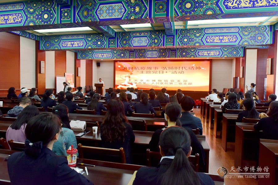 新天水讯 5月22日上午,天水市博物馆党支部联合天水市第一人民医院第二党支部在明道堂会议室开展了“讲好抗疫英雄 弘扬时代精神”“主题党日+”活动。此次活动是在5月15日“春暖花开 为你而来”送展览进医院活动的基础上,邀请了天水市第一人民医院支援武汉医护人员为博物馆全体干部职工作事迹报告。