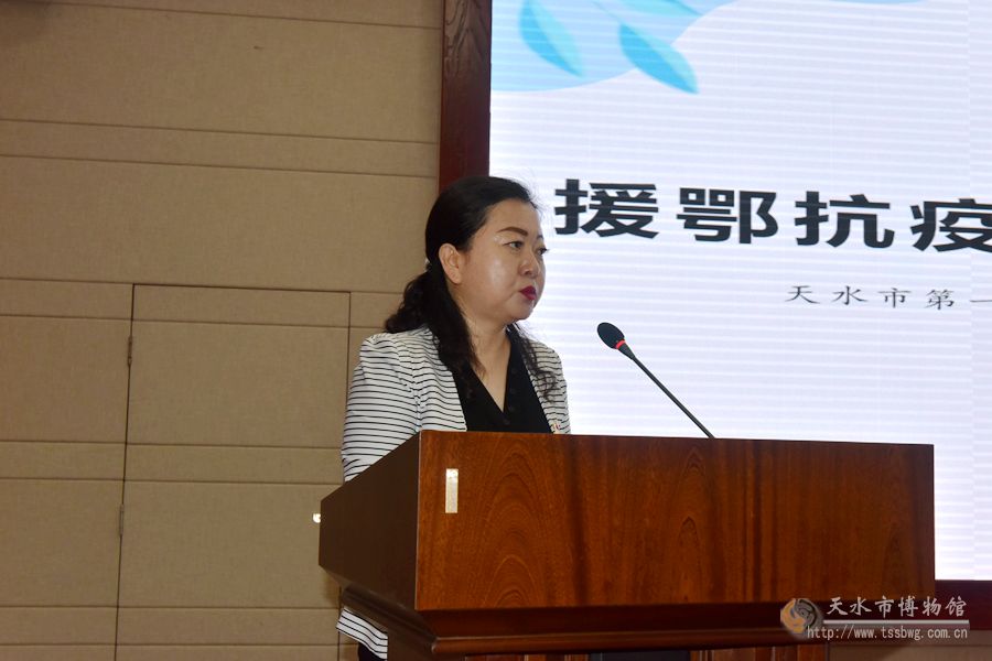 天水市博物馆党支部书记、馆长李宁民在会上作了讲话,代表全体干部职工向天水援鄂医务人员和市第一人民医院的广大医务者致以最崇高的敬意。李宁民指出,今天的活动既是一次致敬逆行者、彰显榜样力量的报告会,更是一次振奋精神士气、追求卓越发展的动员会,希望天水市博物馆全体干部职工以援鄂医务人员抗疫精神为引领,学习他们心怀家国、舍小家顾大家、为民服务的优秀品质,学习他们临危不惧、勇于奉献的责任担当,学习他们攻坚克难、敢打硬仗的优良作风,共同把抗疫精神发扬光大,为天水市文化旅游事业发展作出贡献!