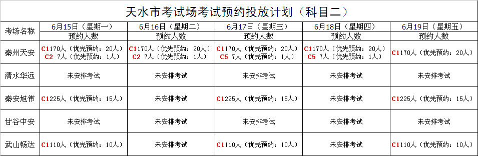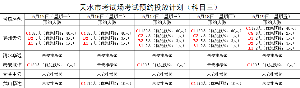 【公告】6月15日至6月19日车辆驾驶人考试计划公告