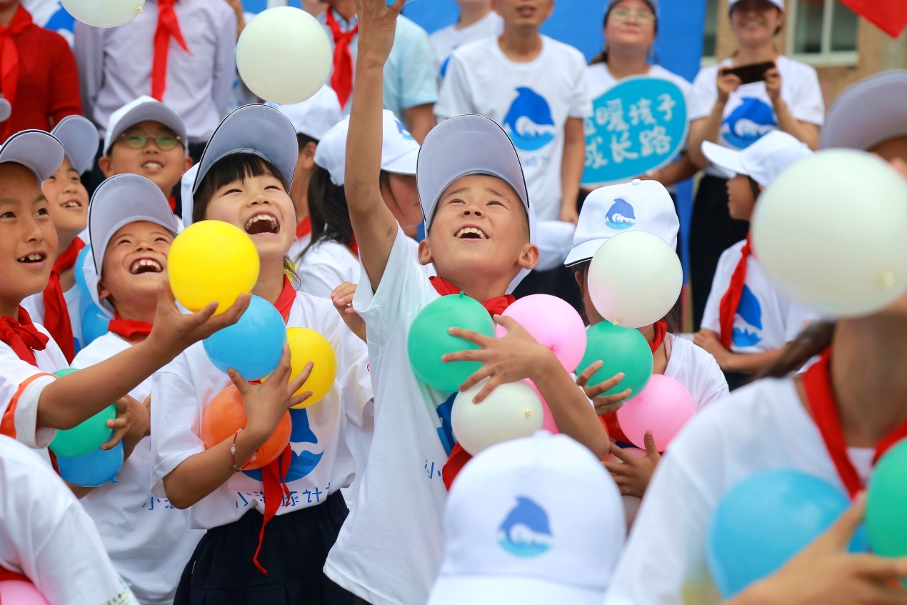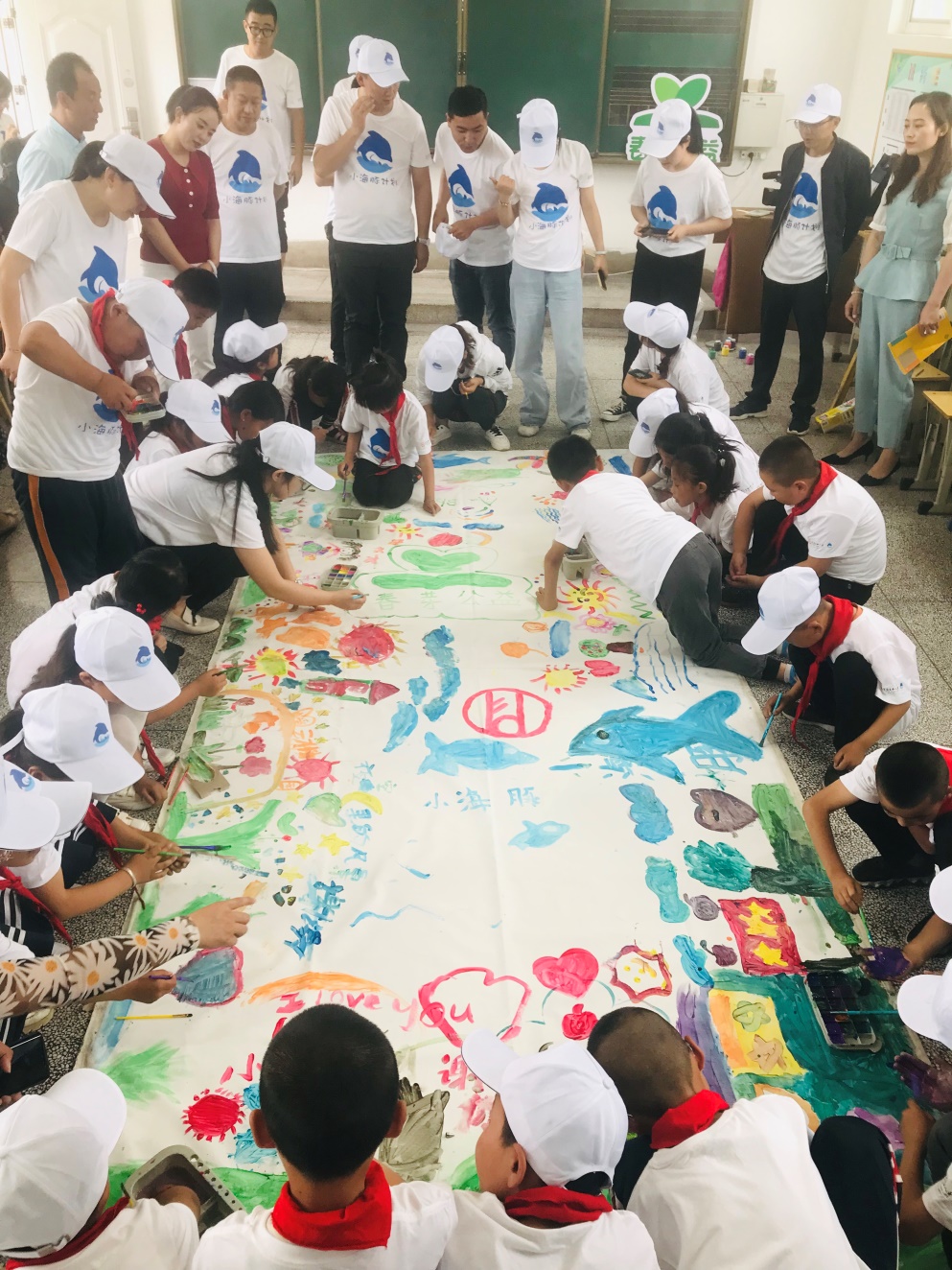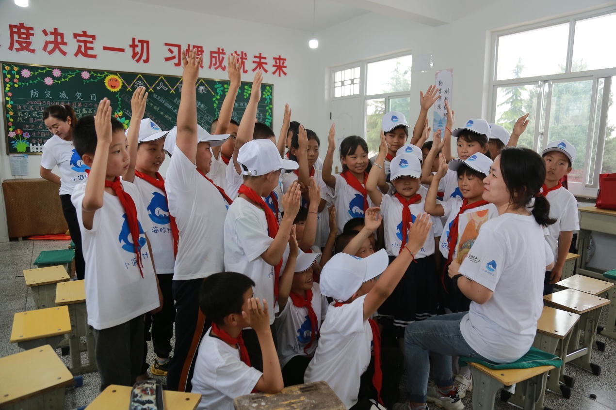 上午9点,一群身着小海豚T恤的志愿者,踏着还未干透的路面,走进 了庄科小学 ,他们的到来瞬间 打破了这座乡村小学原本的宁静 。