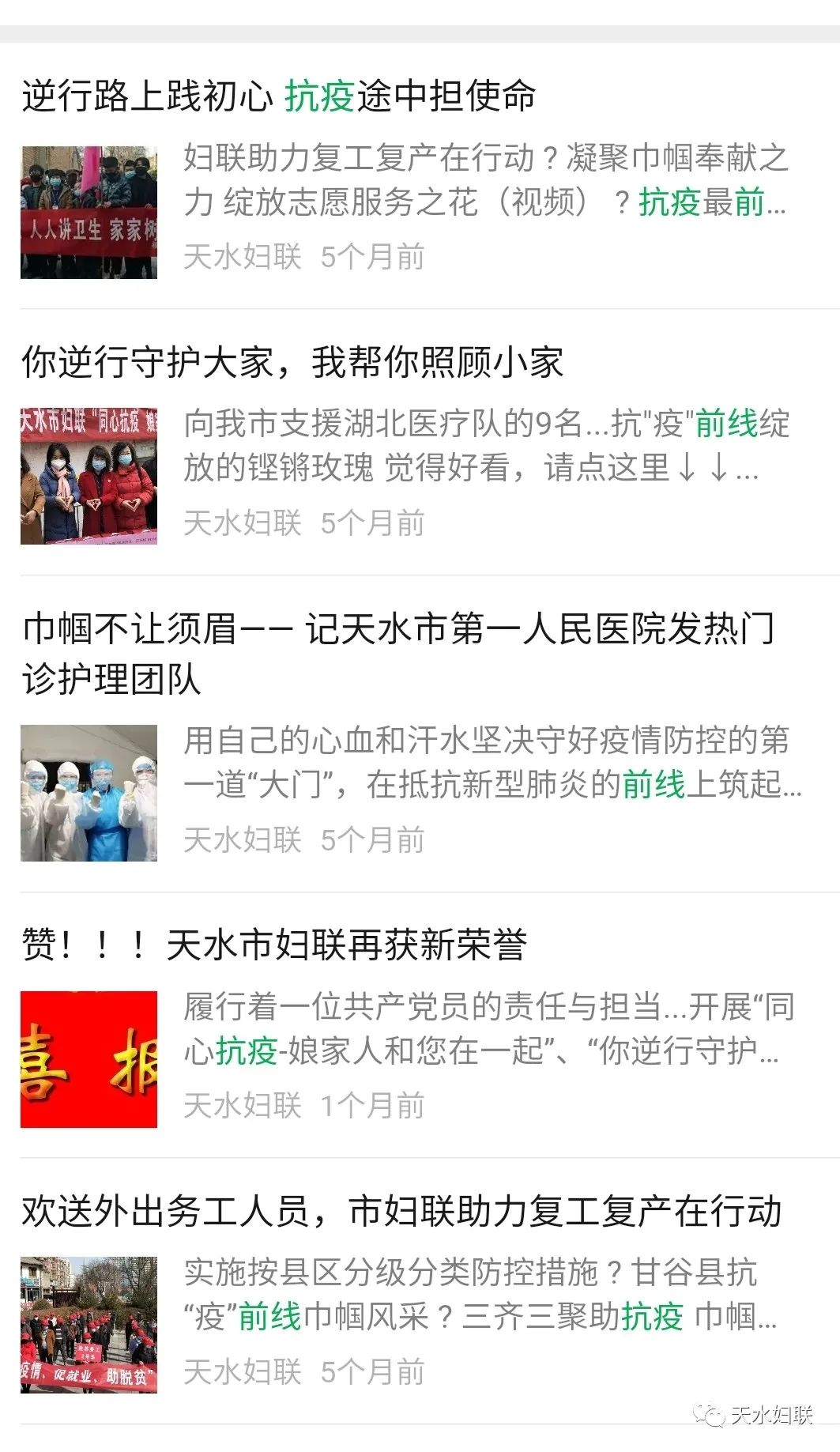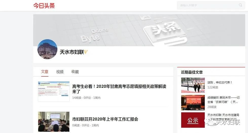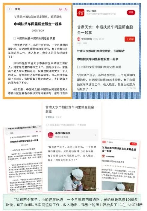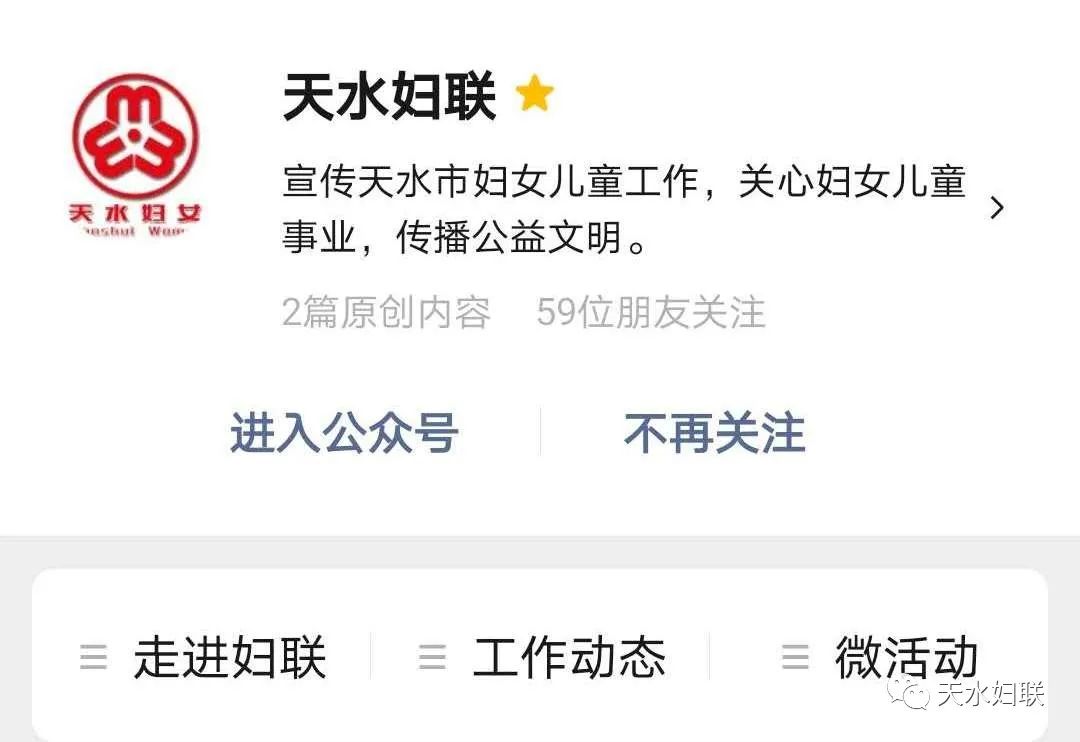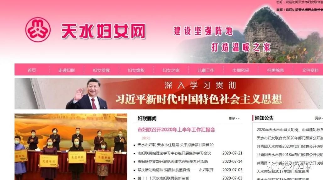 天水市妇联现已开通“天水妇女”网站、“天水妇联”微信公众平台、“天水市妇联”微博、头条号四个宣传平台。七个县区妇联各自开通微信公众平台。自新媒体平台建立以来,市妇联网站、微信公众号、头条号、微博发布信息5092多条、点击阅读量达297多万人次,特别是天水妇联公众号多次跻身全国地市级妇联微信公众号传播指数50强,市妇联网络新媒体平台真正起到了颂扬主旋律,传播正能量,引导妇女思想的作用。仅在新冠肺炎疫情防控中,全市妇联组织运用网络新媒体的微信微博平台矩阵、头条号、网站发布各类信息报道512条,累计阅读量达到52.2万人次,全国、省新闻媒体转载42次,天水巾帼扶贫车间里薪金股金一起拿”被中国妇女报头版、学习强国、中国妇联新闻、甘肃妇女、今日头条刊发,切实发挥了网络新媒体在引导、服务妇女中的作用。