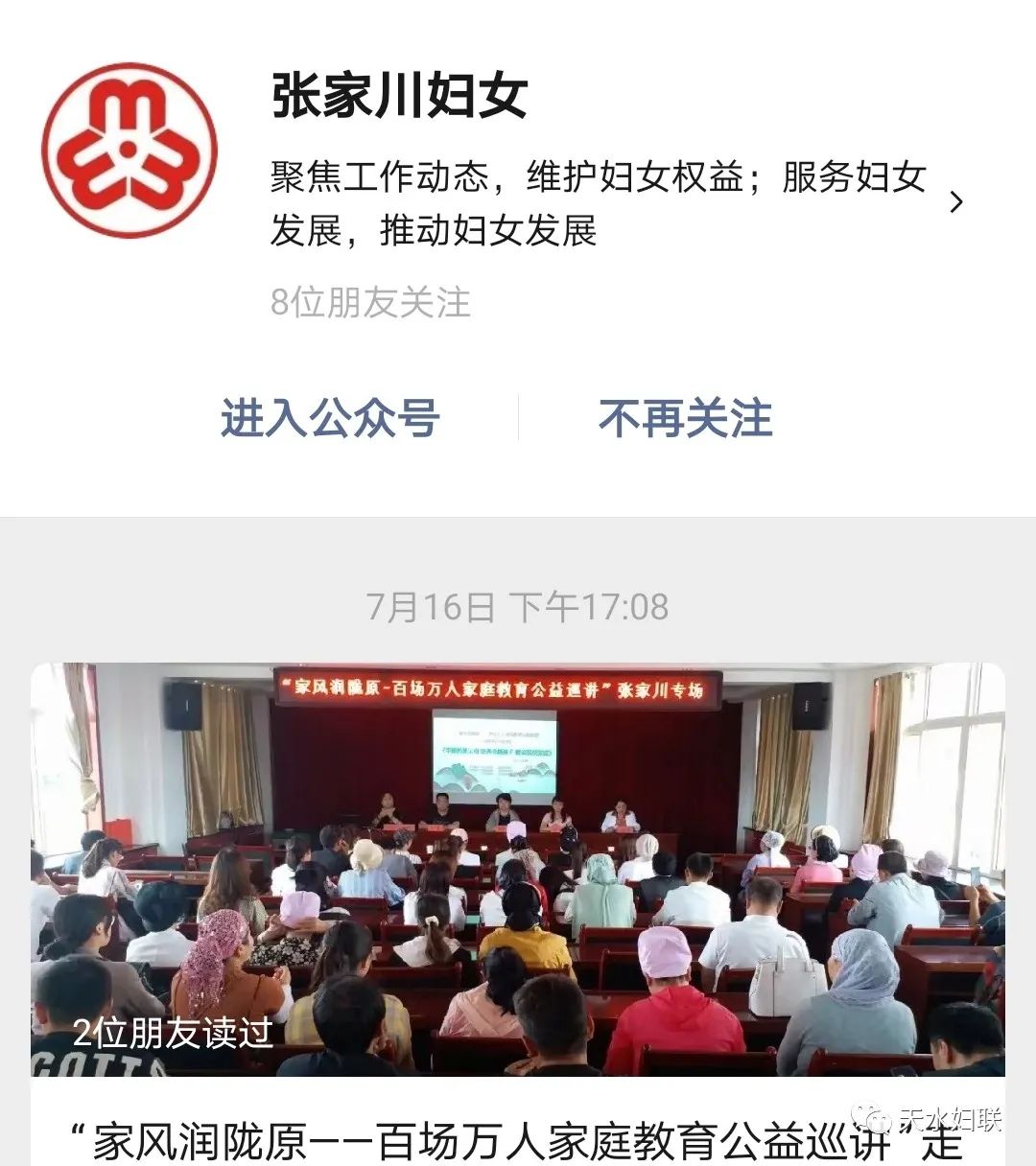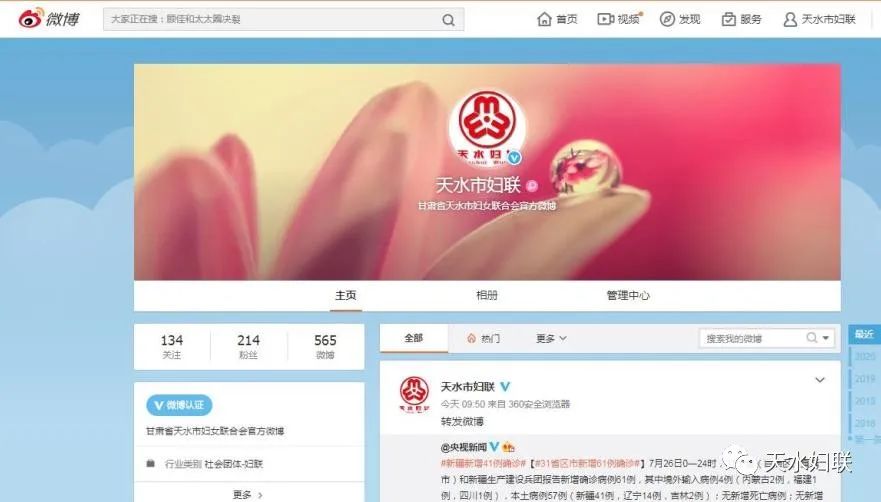 为了进一步深化天水市妇联组织改革,推进妇联组织网络新媒体建设、切实加强网络宣传引导,提高妇联组织影响力和凝聚力,天水市妇联通过“建网”、“用网”、“推网”,不断加强网络新媒体阵地建设,以“三注重+三到位”工作机制切实奏响全市妇联组织网络最强音。