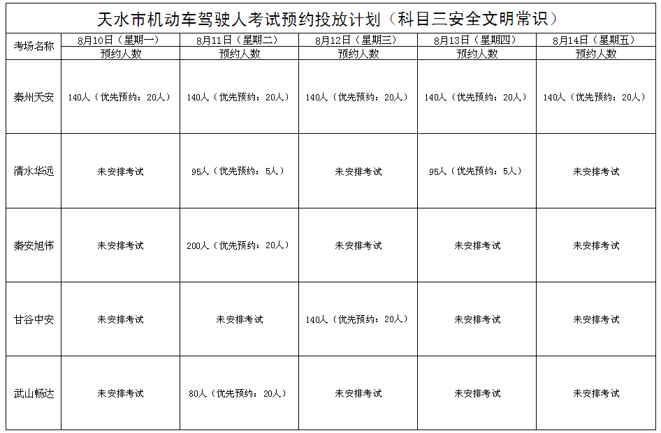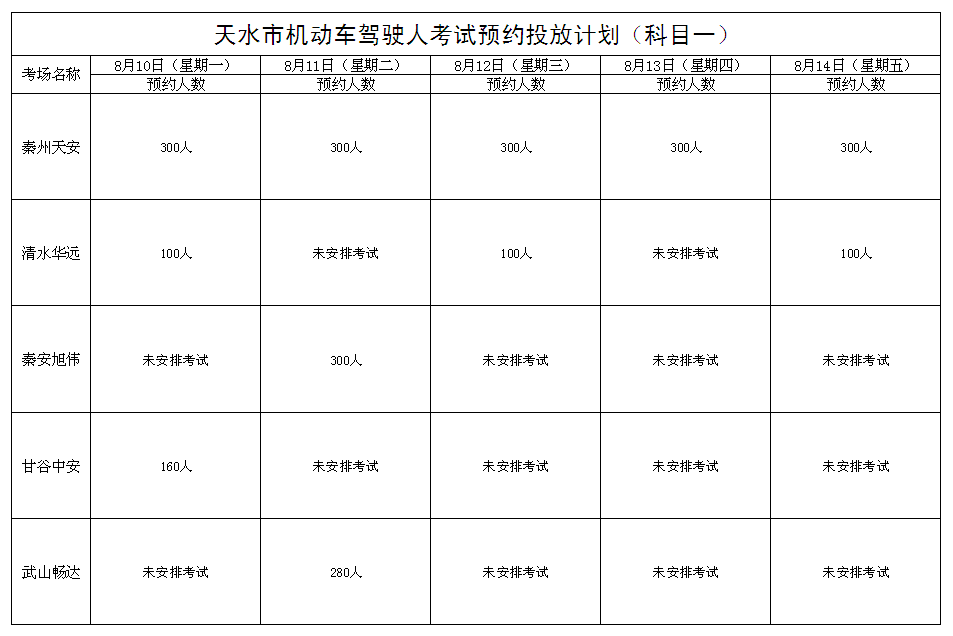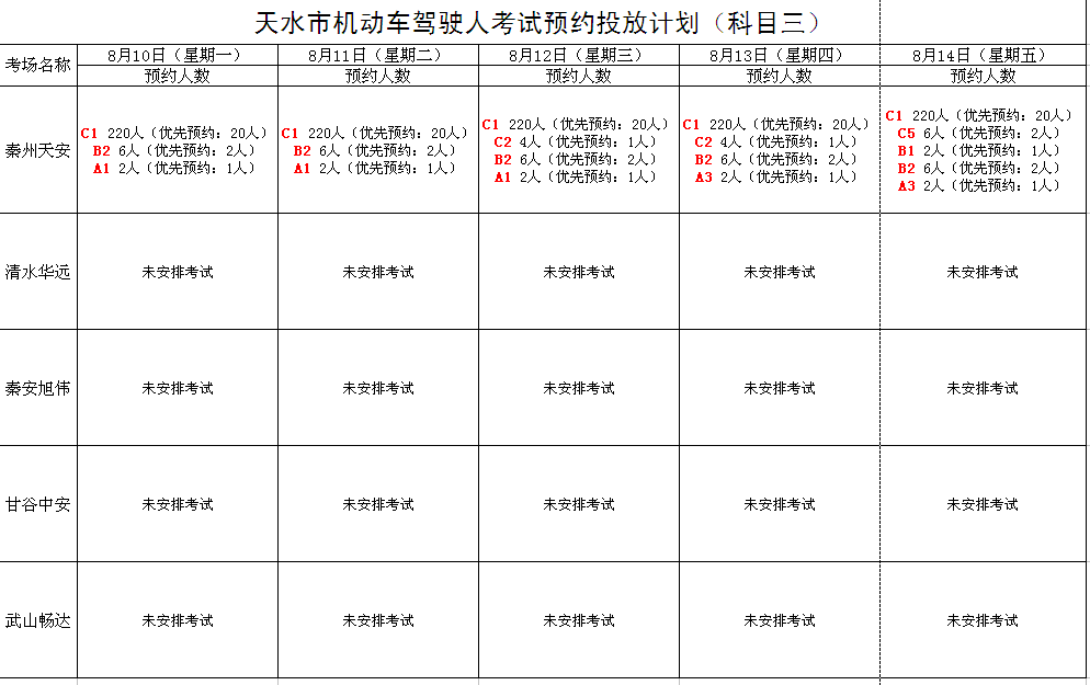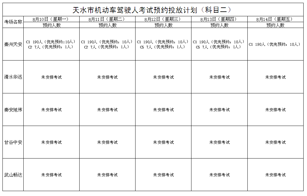 8月10日至8月14日机动车驾驶人考试计划公告