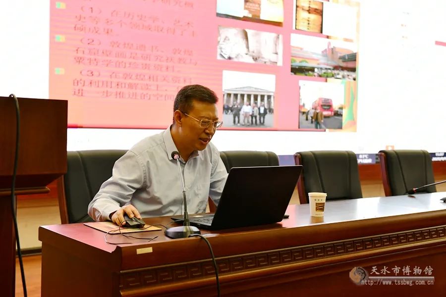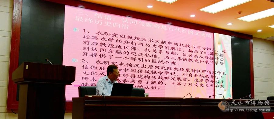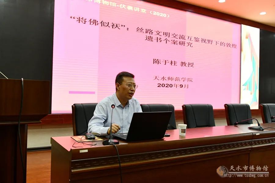 9月9日下午,天水市博物馆、伏羲学院特邀天水师范学院历史文化学院院长、教授陈于柱来我馆作题为《“将佛似祆”:丝路文明交流互鉴视野下的敦煌遗书个案研究》的专题讲座,讲座由天水市博物馆馆长、伏羲学院院长李宁民主持,前来聆听的有我馆领导职工、天水师范学院师生及对历史文化和敦煌学感兴趣的社会各界人士100余人。