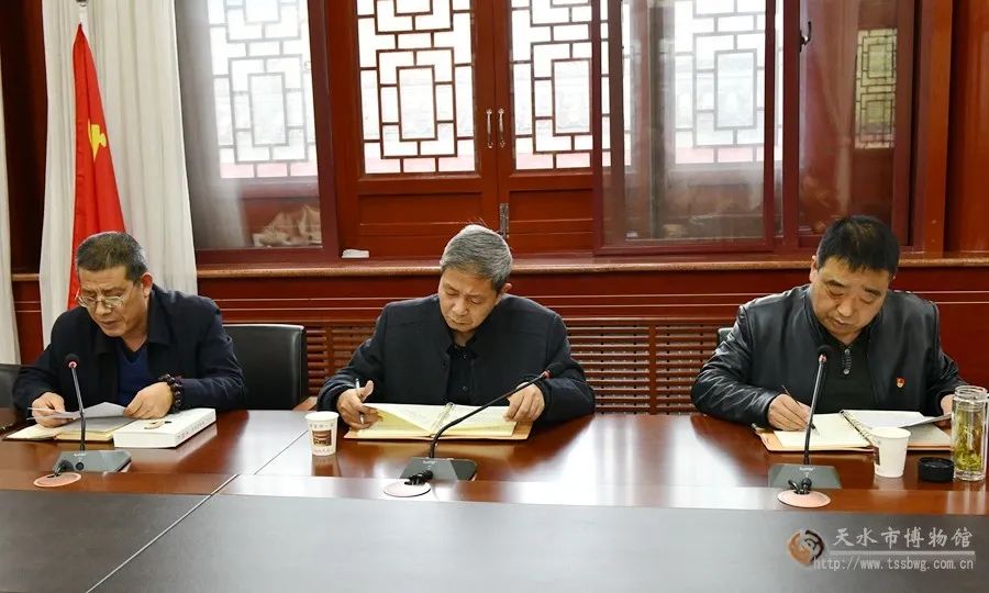 天水市博物馆党支部组织全体党员和科级以上干部50余人参加会议,会议由党支部副书记、副馆长管玉主持。