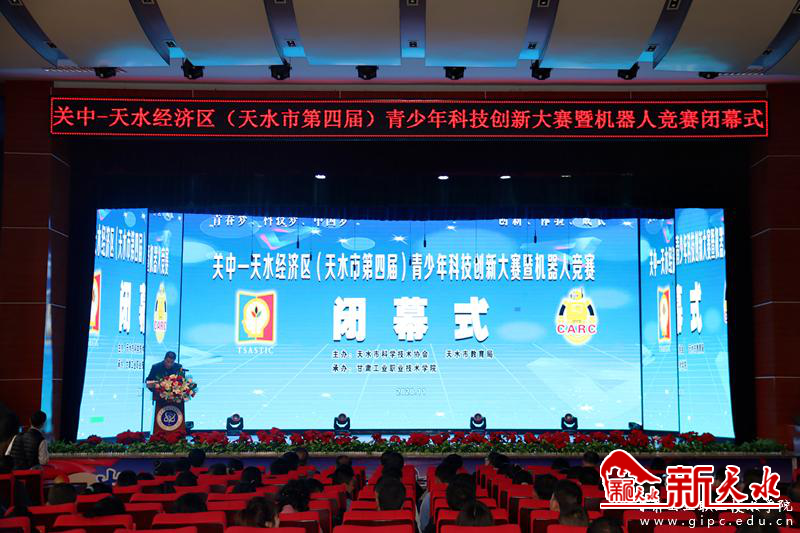 新天水讯 11月13日下午,关中-天水经济区(天水市第四届)青少年科技创新大赛暨机器人竞赛活动在甘肃工业职业技术学院圆满闭幕。天水市科协党组书记、主席李凤奇,市科协副主席袁正荣,甘肃工业职业技术学院党委委员张选择,科技处处长刘亚琦出席闭幕式,闭幕式由市科协副主席刘暾炜主持。
