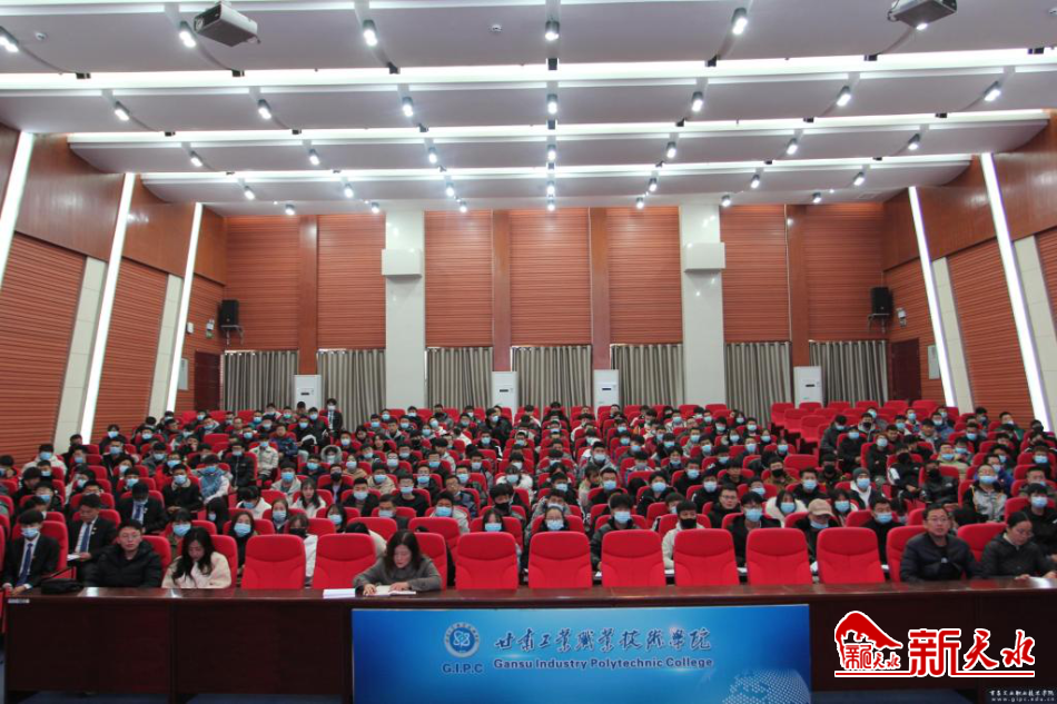 新天水讯 11月25日,甘肃工业职业技术学院党委副书记郭建忠在图书馆智敏学术报告厅,为测绘学院师生作党的十九届五中全会精神理论宣讲报告。
