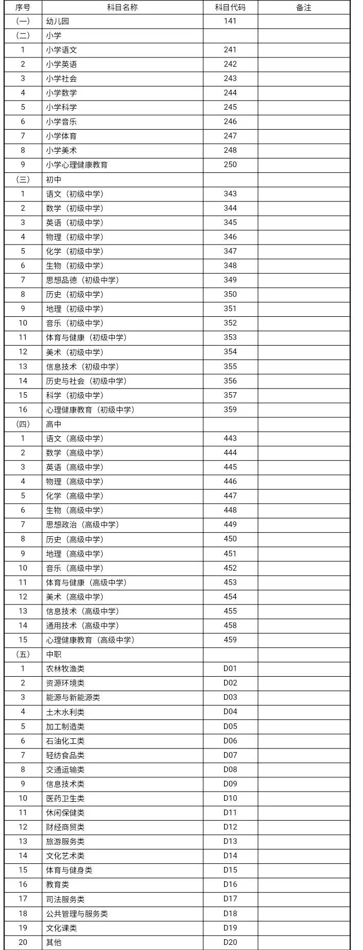 (一)报考学段及学科