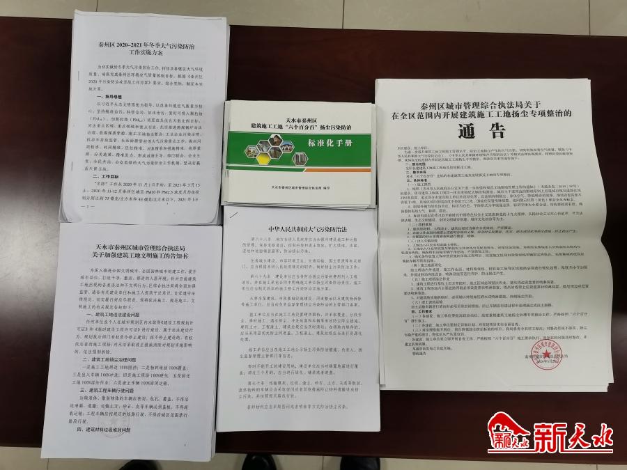 新天水讯 全区冬季大气污染防治工作开展以来,秦州区执法局紧紧结合工作实际,以城市管理“五进”活动为抓手,大力开展冬季大气污染防治宣传教育,普及大气污染防治科学知识,动员全民参与和监督大气污染防治工作,营造良好的工作氛围。累计进学校、工地,入商铺、社区和机关1310家次,现场接受市民咨询860人次,发放各类宣传宣传彩页12300余份、相关法规手册700多册,宣传车每天在城市主次干道流动宣传,使“冬防”举措家喻户晓、人人皆知。