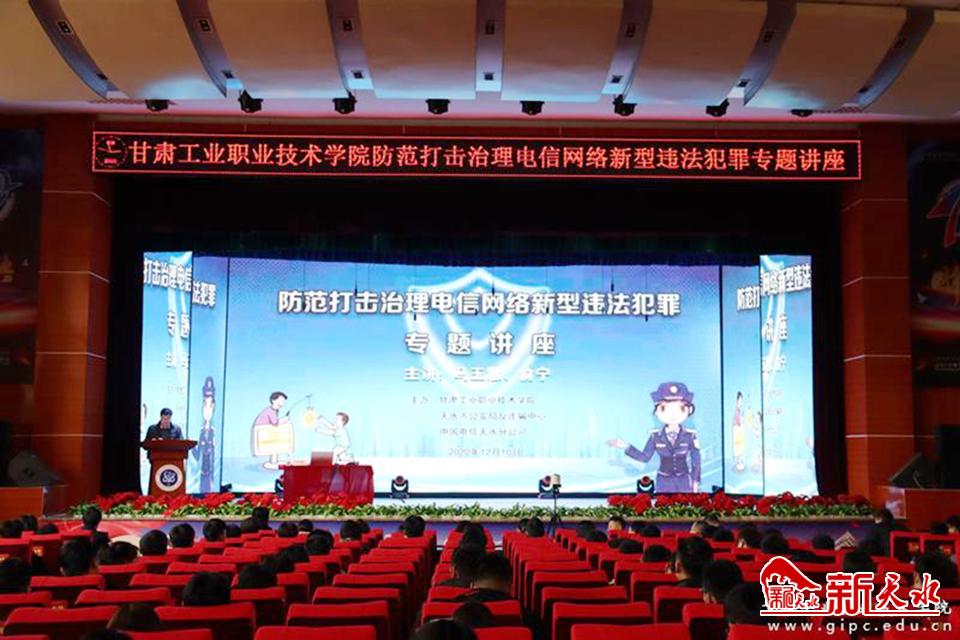 新天水讯 为进一步贯彻落实全省学校安全管理专项整治行动有关要求和省教育厅有关部署,根据《甘肃省教育厅关于印发全省教育系统全面防范电信网络新型违法犯罪工作会议精神的通知(甘教安函【2020】24号)》,结合目前电信网络新型违法犯罪在高校的高发态势,12月10日,甘肃工业职业技术学院联合天水市公安局、中国电信天水分公司为学校400余名学生集中开展预防电信网络诈骗专题宣讲会,校学工处、保卫处、团委等部门相关负责同志和部分专职辅导员参会学习。