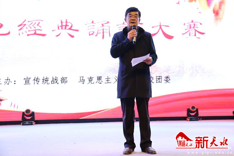 新天水讯 12月11日晚,在甘工院大学生活动中心由宣传统战部、马克思主义学院、校团委联合举办了题为“读红色经典,重拾峥嵘岁月记忆·诵红色经典,重温革命历史情怀”的首届红色经典诵读大赛。校党委副书记郭建忠出席,700余名师生代表观看了比赛,比赛同步进行现场直播。