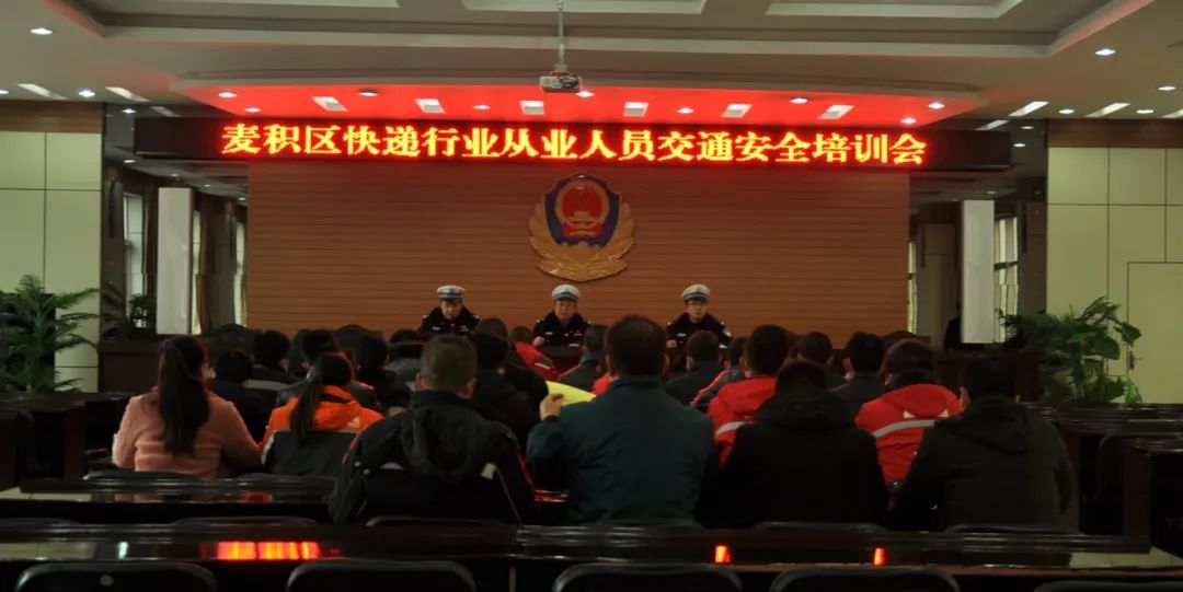 为深入贯彻全区道路交通秩序百日会战和“一盔一带”安全守护行动工作,进一步提高快递行业从业人员的交通安全意识,预防和减少交通事故的发生,12月15日上午,麦积公安分局交警大队组织辖区快递行业从业人员开展交通安全知识培训,努力提升快递行业驾驶员的交通安全意识。