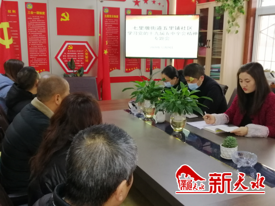 新天水讯 12月22日,七里墩街道五里铺社区党委组织党员干部召开“深入学习贯彻党的十九届五中全会精神”专题学习会。