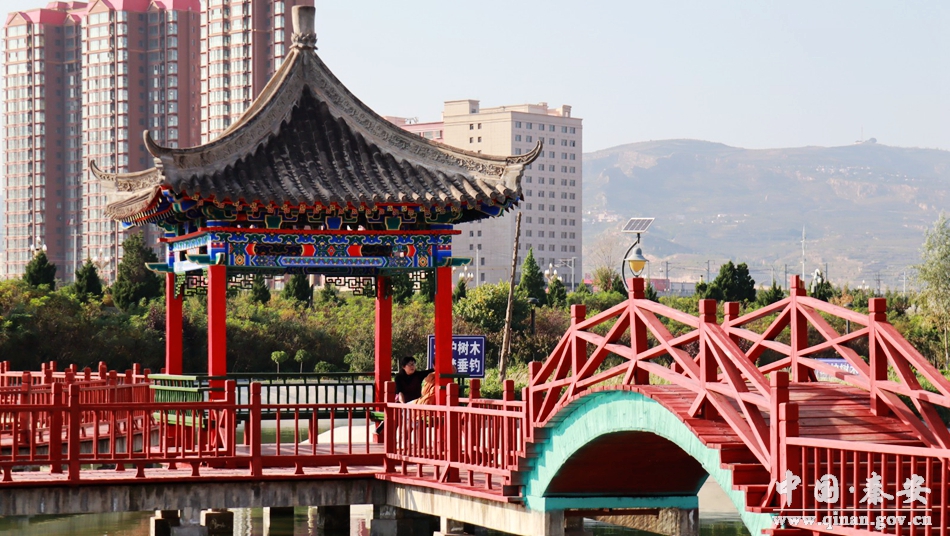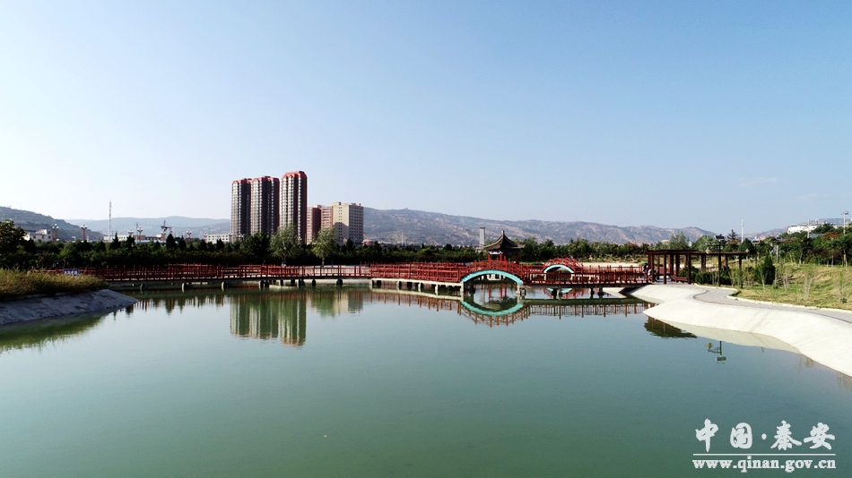 葫芦河城区景观工程按照城市建设生态化的要求,营造“亲水近水”的人文环境,与园林景观绿化建设相互交融,建设具有现代园林特色的葫芦河生态景观区。该工程的实施为秦安增添了一道靓丽的风景,为提升城市品位、改善人居环境、塑造魅力秦安新形象添上了浓墨重彩的一笔。