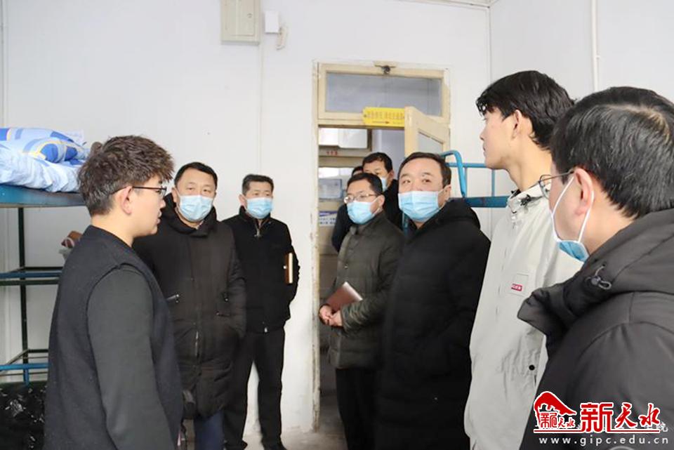 新天水讯 为贯彻落实甘肃省教育厅关于认真做好寒假前后高校疫情防控工作的最新部署精神,1月11日上午,甘肃工业职业技术学院党委书记杨声、院长安建平带队督导检查校园疫情防控工作。疫情防控办公室、学工处、国资与后勤处、保卫处等部门主要负责人陪同检查。