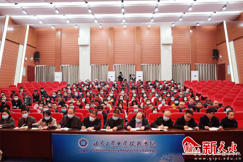 新天水讯 为深入学习贯彻习近平总书记在党史学习教育动员大会上的重要讲话精神,按照党中央决策部署和省委、省委教育工委工作要求,3月12日下午,甘肃工业职业技术学院在图书馆智敏学术报告厅召开党史学习教育动员大会。学校党委班子成员、科级及以上干部、全校师生党员、专职辅导员、马克思主义学院专职教师、“1231”工程学生和团学干部代表共200多人参加会议,校党委书记杨声作动员讲话,院长安建平主持会议。