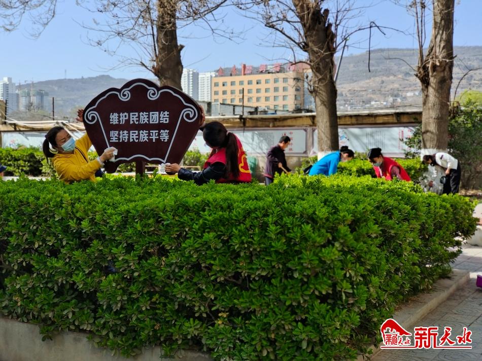 新天水讯【通讯员梁昇】为助力文明城市创建,给居民营造一个温馨的居住环境,增强居民保洁意识,3月23日下午,七里墩街道五里铺社区新时代文明实践站携手辖区共建单位志愿服务队,开展辖区环境卫生大整治活动。