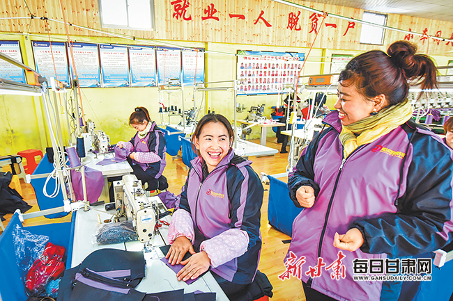 甘谷县安远镇在村里扶贫车间上班的农家妇女开心如意。新甘肃·甘肃日报记者高樯