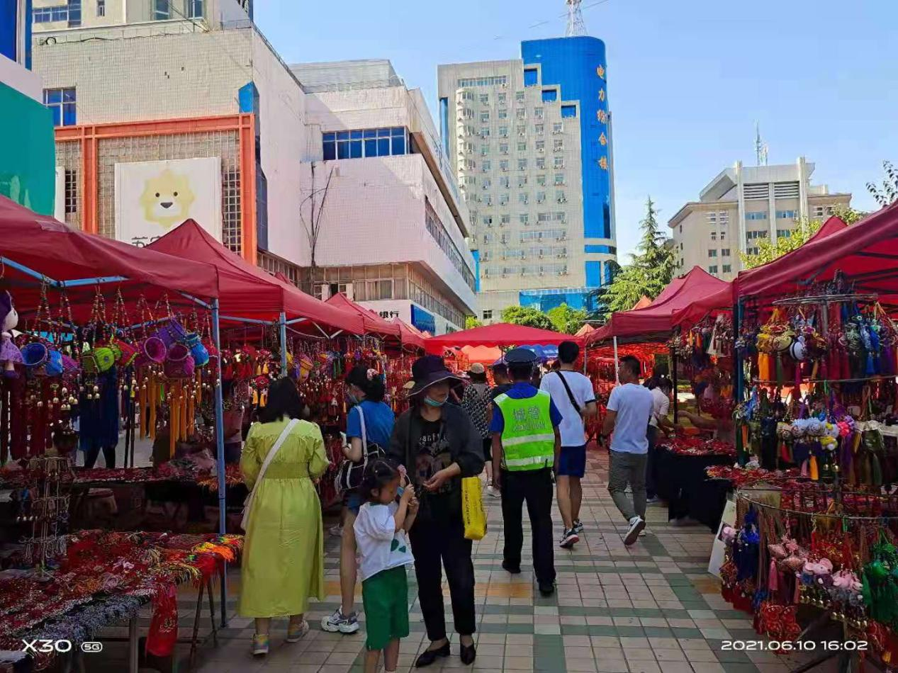 在保障中,中队执法人员除像往常一样对流动摊点、店外经营、乱搭乱建、噪音扰民、车辆乱停放管理之外,重点对端午期间带有民俗特色的荷包、粽子和糕点摊点开通“VIP”通道,进行“特殊”管理。中队把沿街的荷包、粽子和糕点摊点统一规范在龙城广场的三台上,要求摊主统一使用规格大小一致,颜色均为红色的帐篷,整齐有序摆放。目前,共摆放荷包摊点50余处,糕点摊点15余处,粽子摊点20余处,这不仅使整个辖区市容环境秩序眼前一亮,还吸引了大批市民驻足观赏、选购,呈现出浓浓的节日氛围。