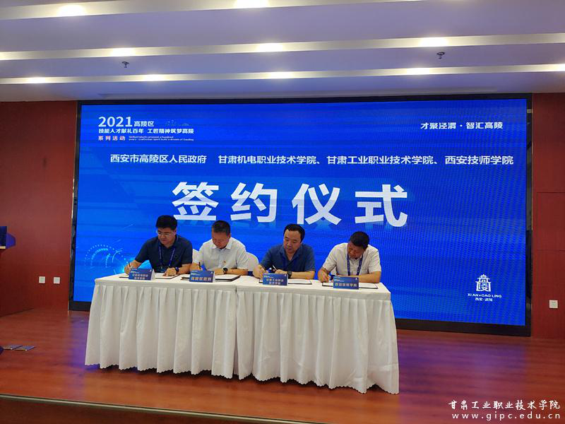 6月23日上午,安建平一行参加了高陵区举办的“技能人才献礼百年、工匠精神筑梦高陵”系列活动,并在会上与高陵区政府签订了战略协议,在人才引育、学生实习、技能培训等方面达成合作意向,实现学校育才、企业用才的无缝对接。