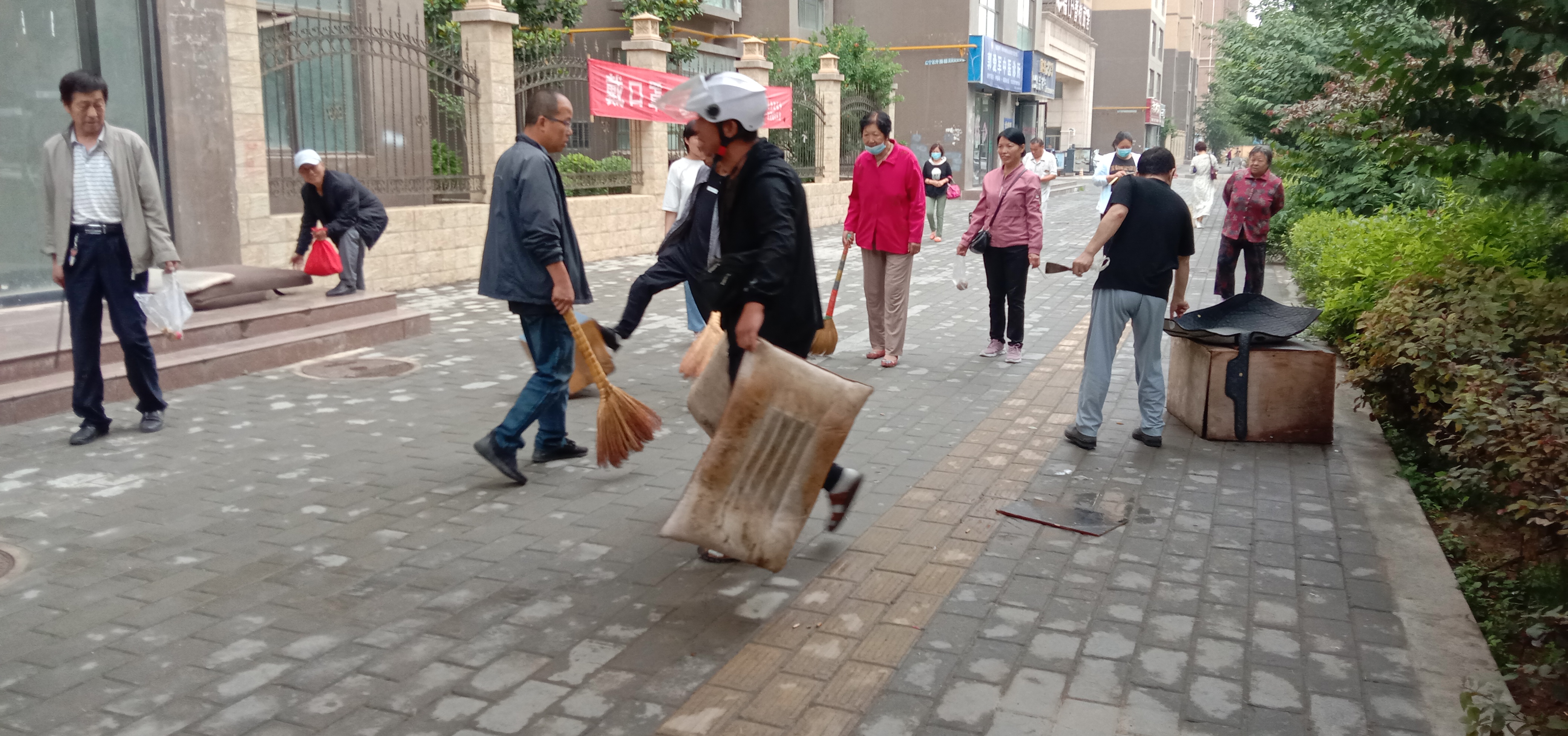 此次环境清理整治活动主要针对辖区沿街路面、部分小区区域内的卫生死角、积存垃圾、生活垃圾等存在的脏乱差现象进行彻底清理。活动中,工作人员、志愿者分成小组,分别拿起铁锨、扫把、垃圾桶等卫生工具,有的清扫,有的装车装袋,有的清理居民楼前堆放的淘汰旧家具,有的清理堆放的杂物,工作人员及志愿者们分工合作、各尽其职、团结一致,通过近两个小时的辛勤劳动,终于把辖区内沿街路面的生活垃圾、不容易打扫到的卫生死角全部清理干净,做到动态保洁,维护辖区环境面貌。