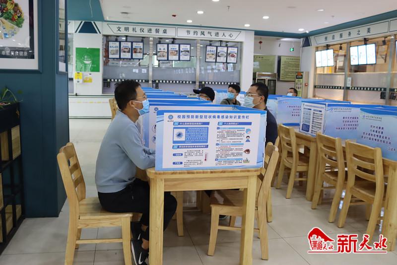 演练过程中,各部门工作人员严格按照学校疫情防控应急演练方案中的预定流程,分工明确、反应迅速、协调有序。由20多名辅导员扮演返校学生,有序排队进校,工作人员查验身份,查看健康码和行程卡,测温后由志愿者引导统一接受核酸检测。学生进入宿舍时,自觉接受宿舍管理员二次测温查验,核实并登记信息。辅导员每日进行晨午晚检,对体温异常的学生按照演练方案进行恰当处理。学生就餐时要间隔1米排队,测温后依次进入餐厅,单人单桌就餐后,从单向出口离开。