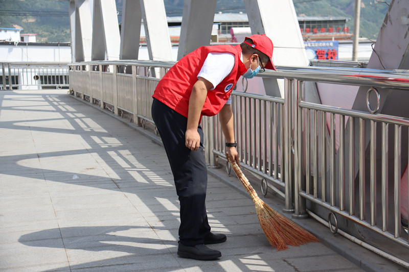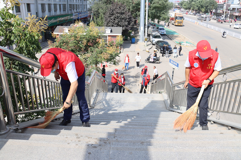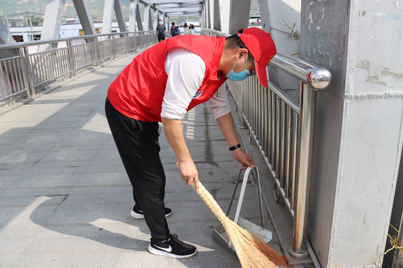 志愿服务活动中,全体领导班子成员身穿红马甲、头戴小红帽、手拿清洁工具,对校门外人行道及人行天桥上的烟头、纸屑、树叶等生活垃圾进行了打扫,对绿化区域内的杂草进行了清除。大家积极踊跃、分工合作,不漏过一个细节、不放过一个死角,以自身实际行动为广大群众和师生做出表率。