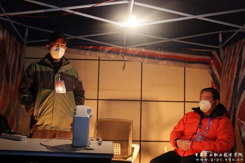 退休老领导李玉生、老教师王敏龙也是其中的一员,在天水疫情最为严峻的阶段,作为老党员的他们,虽退休但不褪色,坚持冲锋在前,主动担当作为,为学校疫情防控工作贡献自己的力量。从早上八点到晚上十点,在学校六号家属楼前的帐篷里,我们始终能够看到他们坚持工作的身影,他们用实际行动作出表率,彰显了一名老党员、老干部的为民情怀和责任担当。