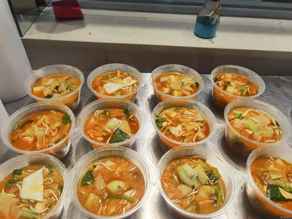随着天水市疫情防控形势越发严峻,2021年10月30日开始学校实行全封闭管理。食堂的148位工作人员,大多数都没来得及回家取被褥、换洗衣物以及生活用品等,放下家里的老人、孩子,拖亲靠友帮忙看顾。他们在大教室里打地铺,克服临时简陋的住宿条件;每天早出晚归,处理各类食材备餐,直到深夜才能休息。为了让医护人员和执勤人员在辛苦工作完毕后能有热饭热菜可吃,腾辉餐厅工作人员凌晨三点还在不辞辛劳地准备饭菜。