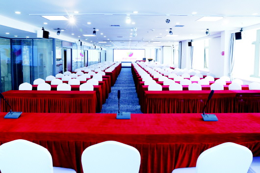 五楼会场外拥有400平米室外休闲大平台,供会议及培训人员休息时放松身心,课间交流场所,地下有专用停车场供与会人员便利停车。