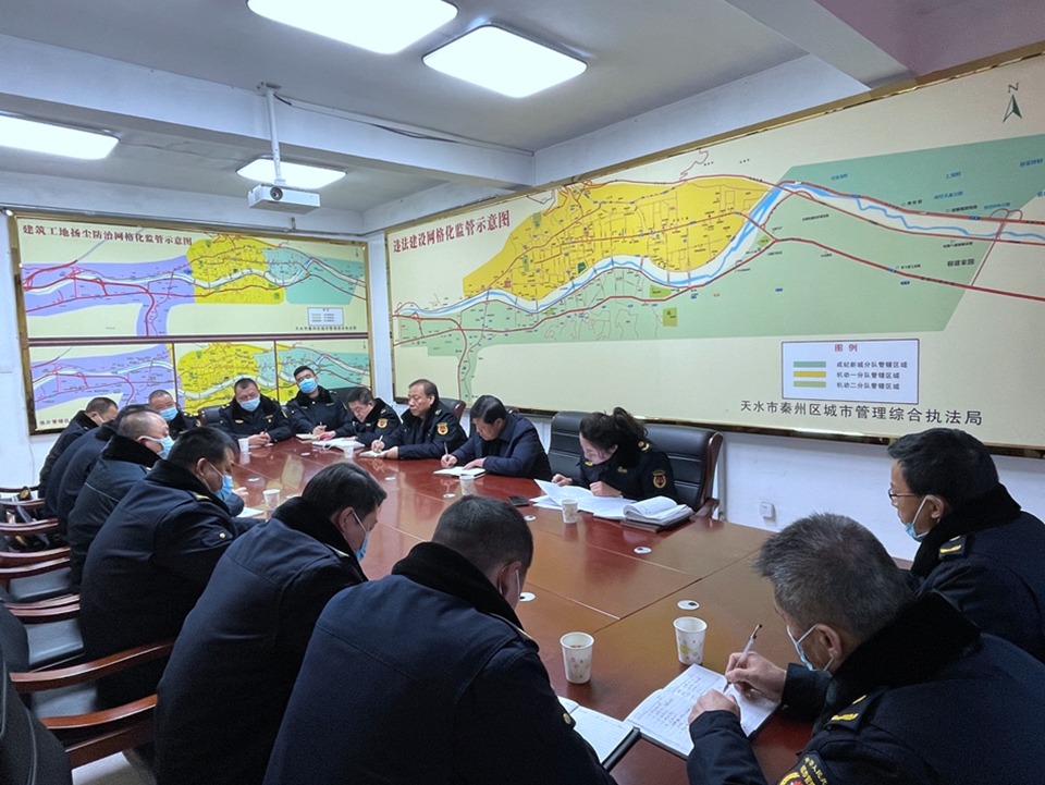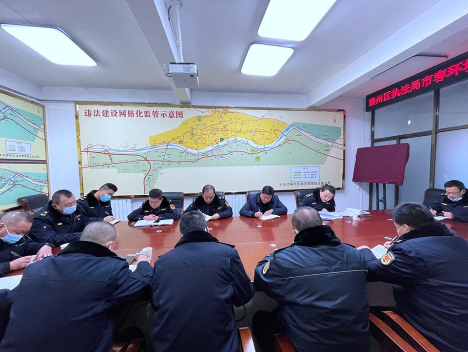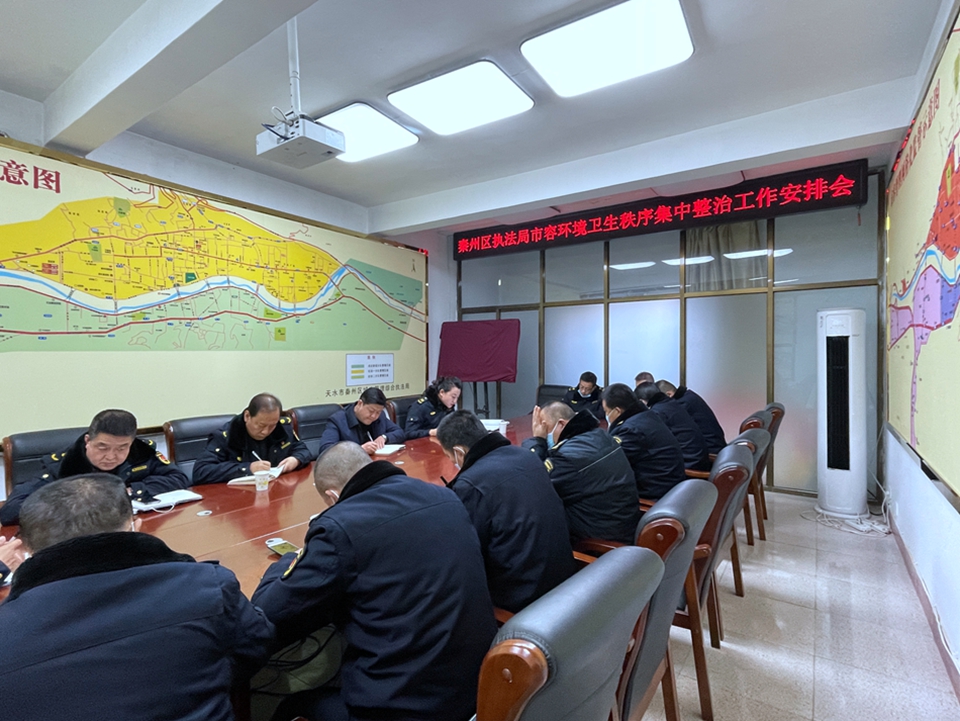 新天水讯 2月11日下午,秦州区执法局召开市容环境卫生秩序集中整治工作安排会,会上传达学习了区政府市容环境卫生秩序集中整治实施方案,并对开展市容环境秩序集中整治进行了全面的安排部署。