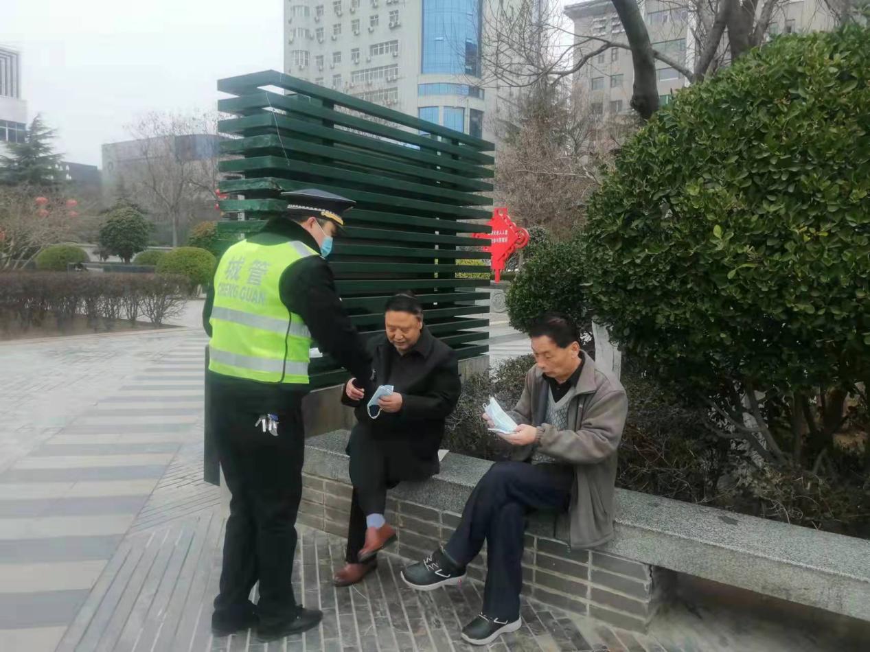 首先,中队人员深入辖区主次干道及背街小巷,向临街门店负责人普及疫情防控相关知识,要求每户门店务必做好健康监测、测温验码登记、“一米线”、清洁消毒公示记录等事项。其次,中队人员重点对公园、广场周边扎堆聊天、跳广场、下棋的聚集人群进行疏导、劝离,并对未佩戴口罩的市民,现场发放一次性口罩,提醒广大市民出门务必佩戴口罩,决不能抱有侥幸心理,一定要增强自我防护意识。随后,广场聚集人群在中队人员的劝离下,纷纷离去。