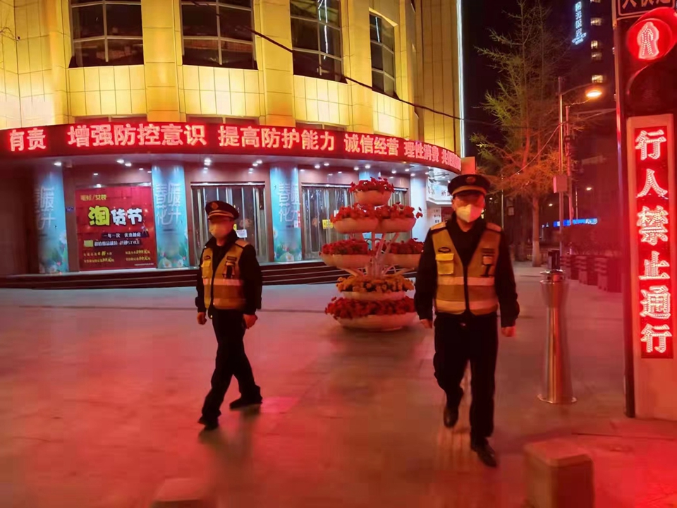新天水讯 犹如“倒春寒袭”,秦州几天来根据疫情又一次按下“暂停键”,交通管制、商铺歇业、人员禁足、城市“静”下来。城管队员却肩负战役使命,始终冲在一线,干在前沿,做好防疫宣传,社会面管控、街面守护、超市维护秩序,清理疏散人群,抓捕流浪犬,清理残缺破损春联,维修分道栏杆,取缔落满灰尘污垢的灯笼,他们披星戴月,脚步忙碌,眼里有活,手中不停,在“寂静”的城市里闪动着最美的身影。